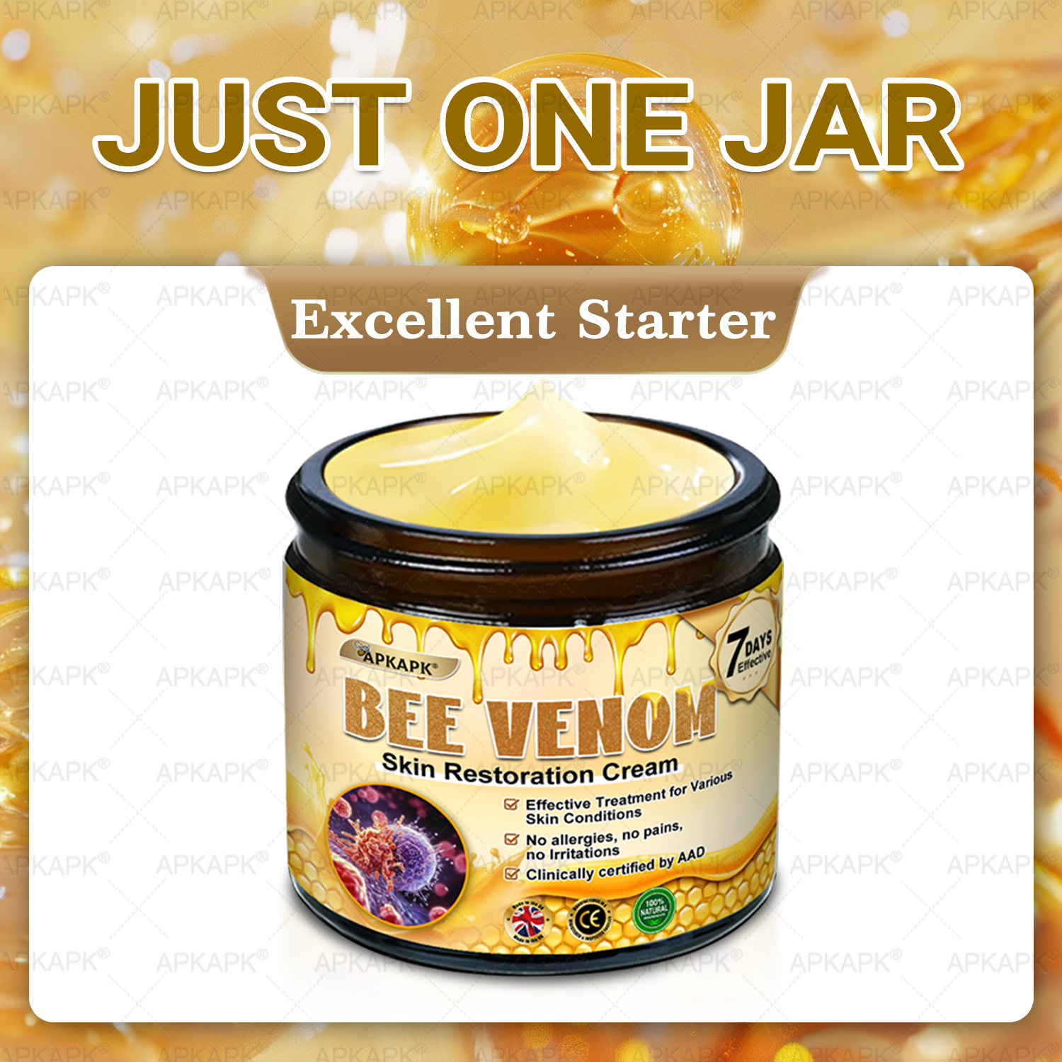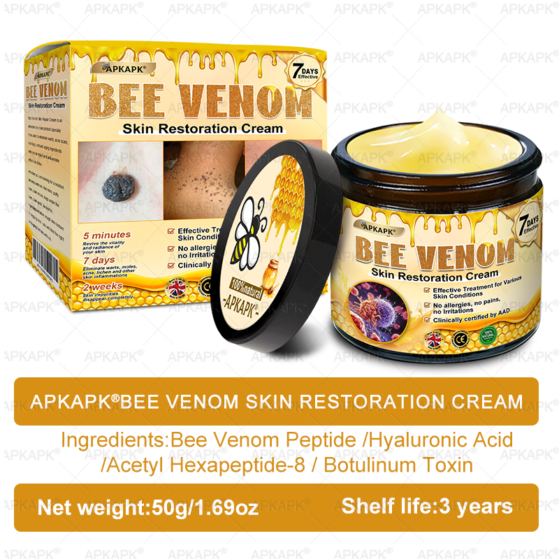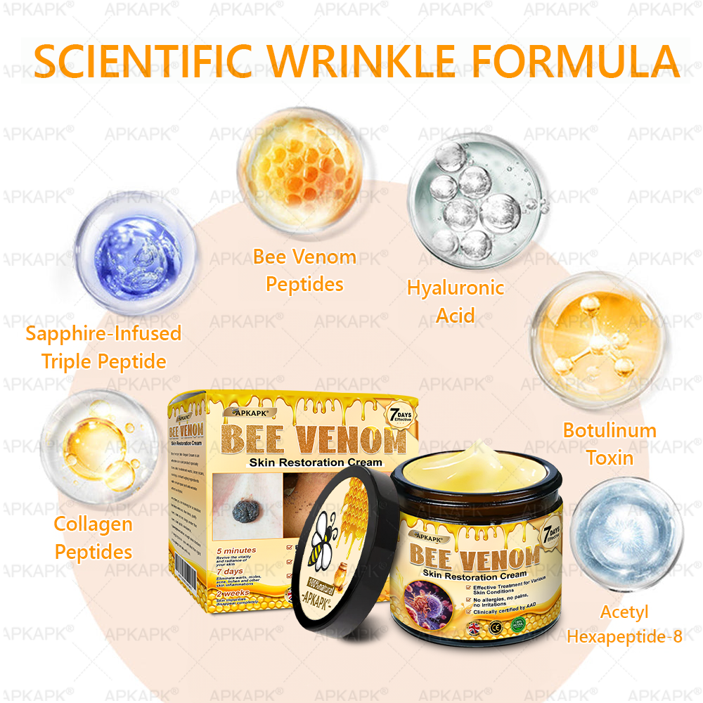 ✅Effective Results: APKAPK® Bee venom Skin Restoration Cream delivers noticeable results, providing visible improvements to your skin's tone, texture, and firmness.