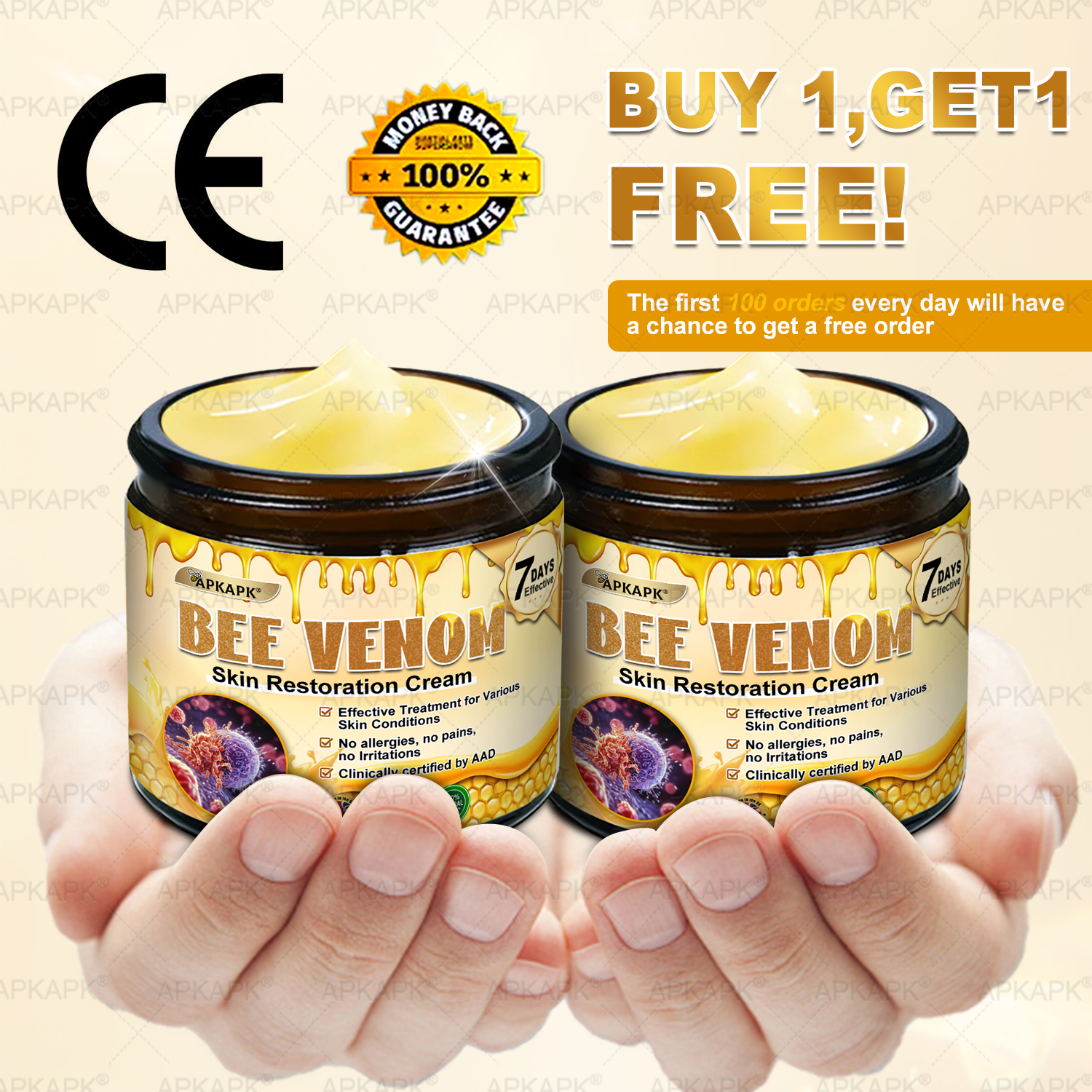 ✅ Suitable for All Skin Types: Regardless of your skin type, APKAPK® Bee venom Skin Restoration Cream is designed to cater to everyone, including those with sensitive skin.